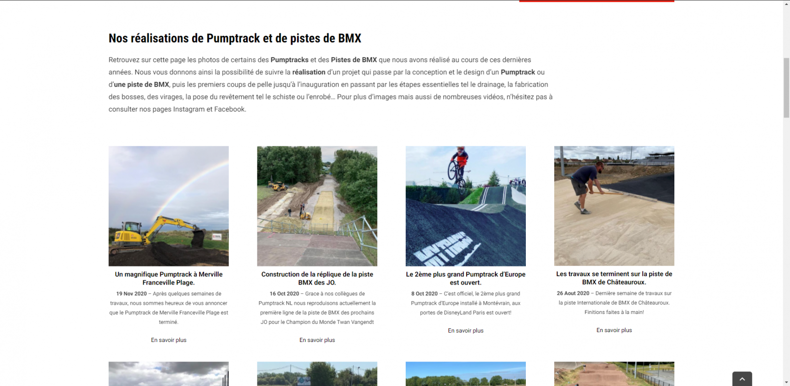 Nous travaillons en collaboration avec des entreprises de construction locales dans le monde, afin de livrer des pistes de BMX, Pumptracks (…) de qualités.