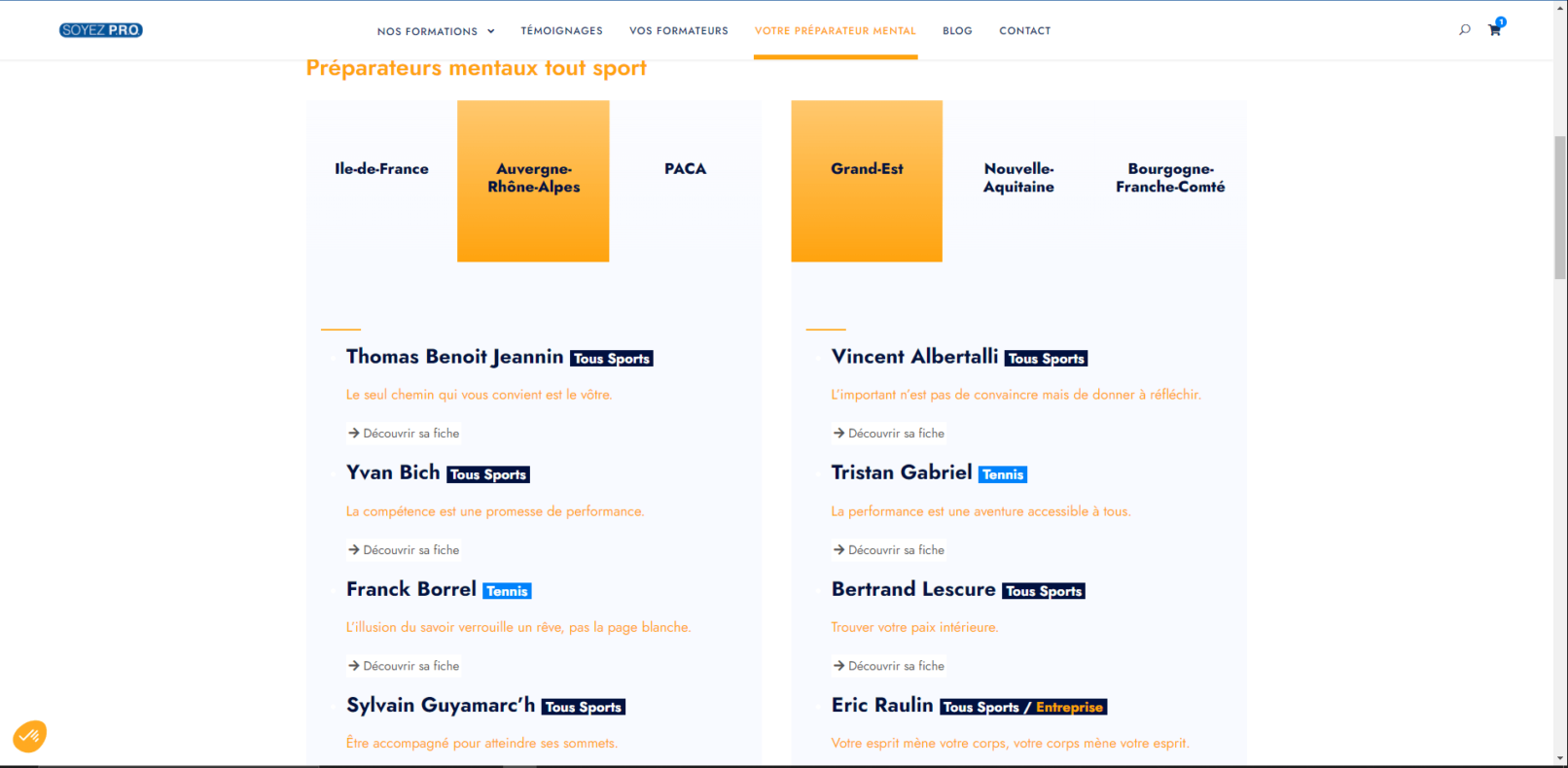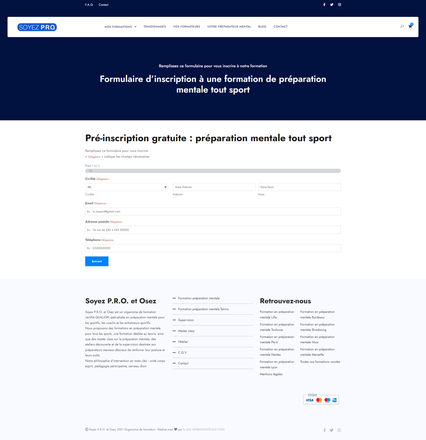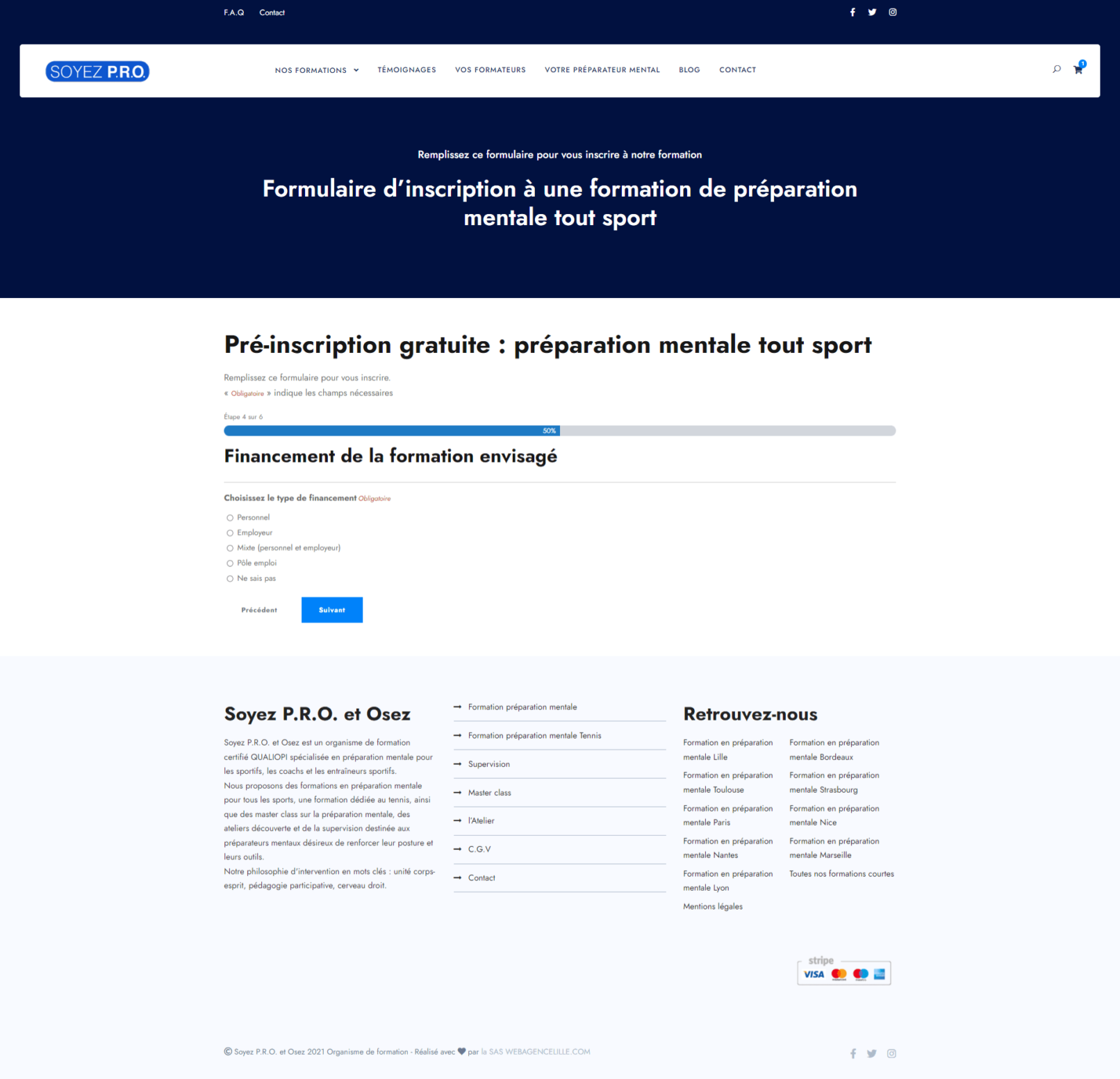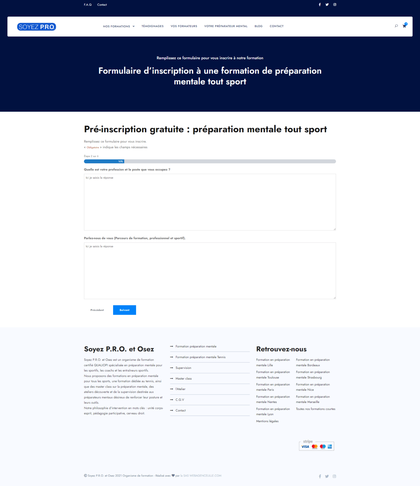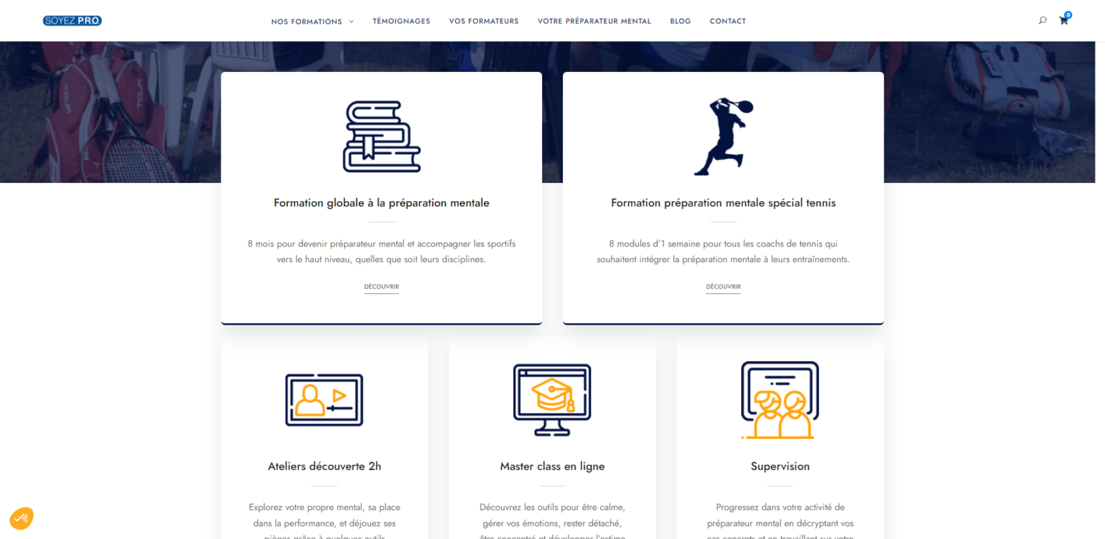 Créer une plateforme pour la vente de formations en ligne dans la préparation mentale sportive, avec un système de questionnaire conditionnelle afin de déterminer quel est le profil du visiteur pour mieux l’accompagner dans son projet de formation.