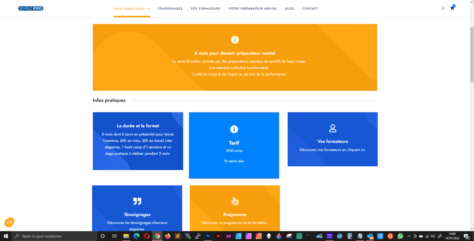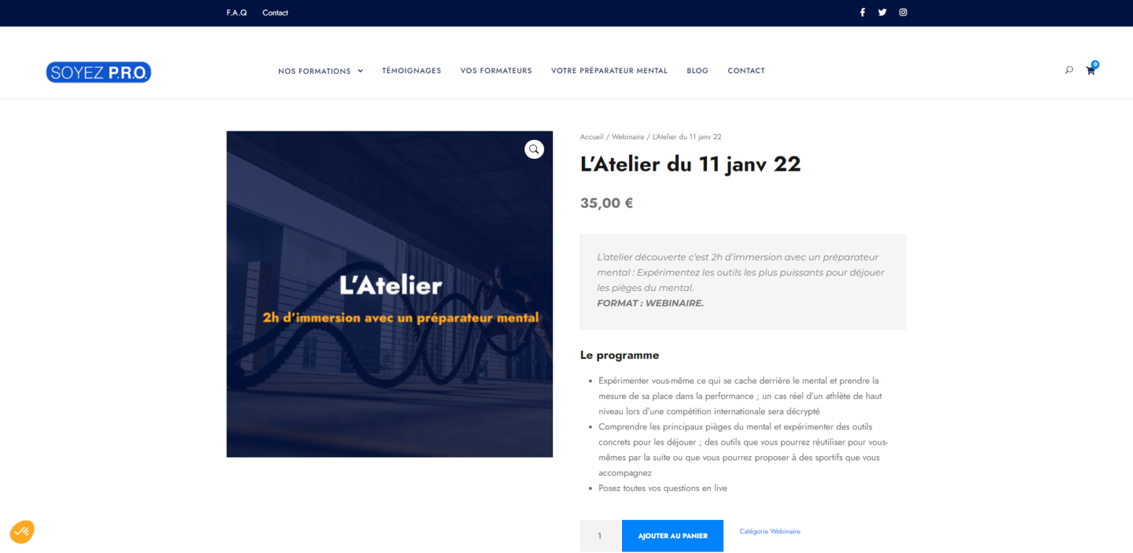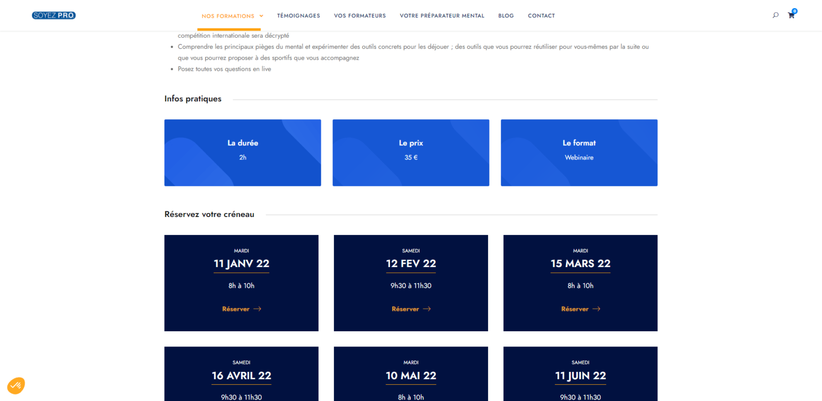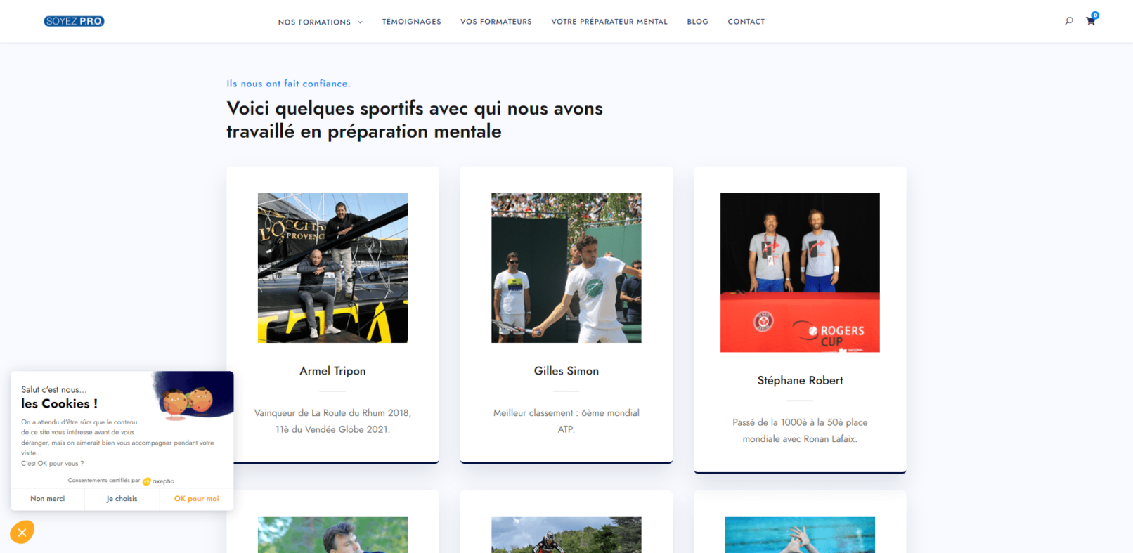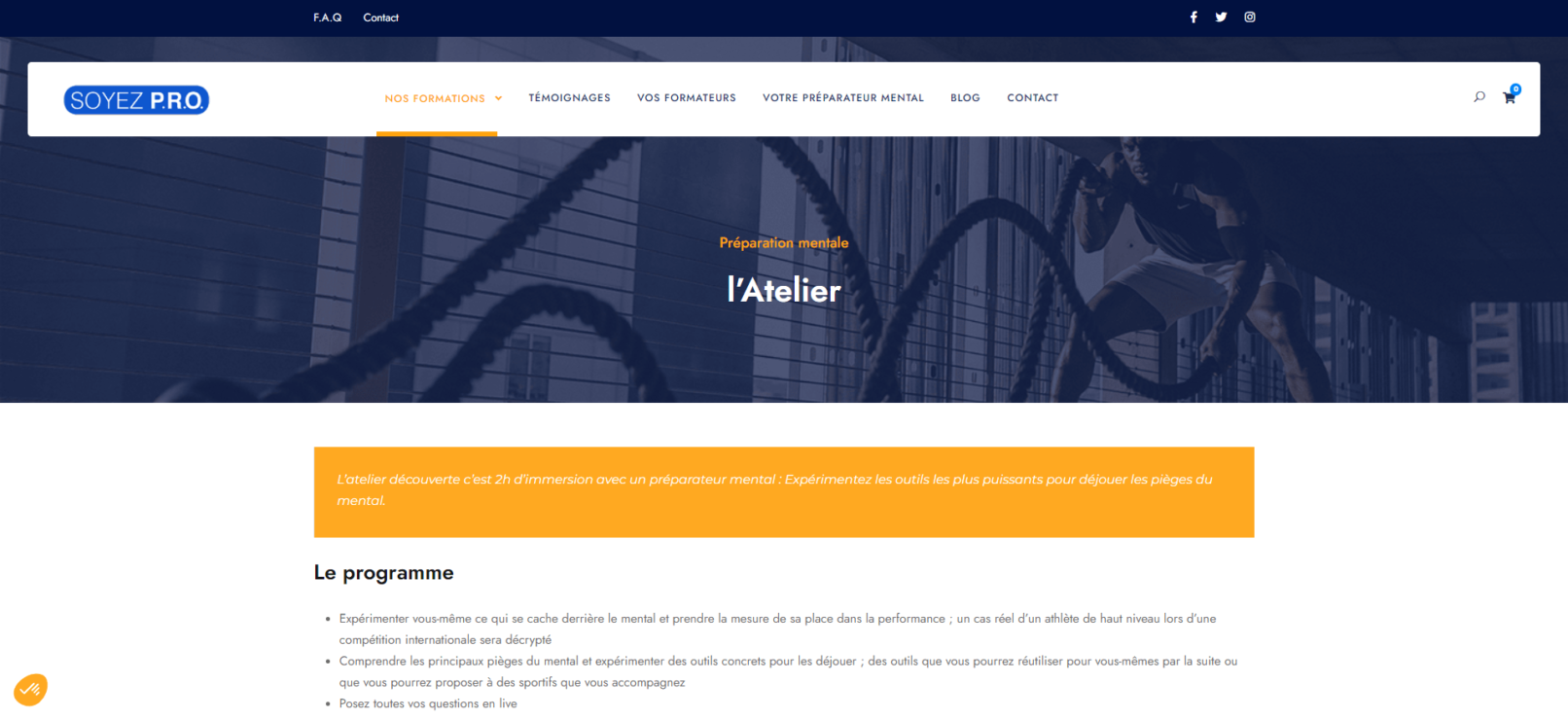Créer une plateforme pour la vente de formations en ligne dans la préparation mentale sportive, avec un système de questionnaire conditionnelle afin de déterminer quel est le profil du visiteur pour mieux l’accompagner dans son projet de formation.
