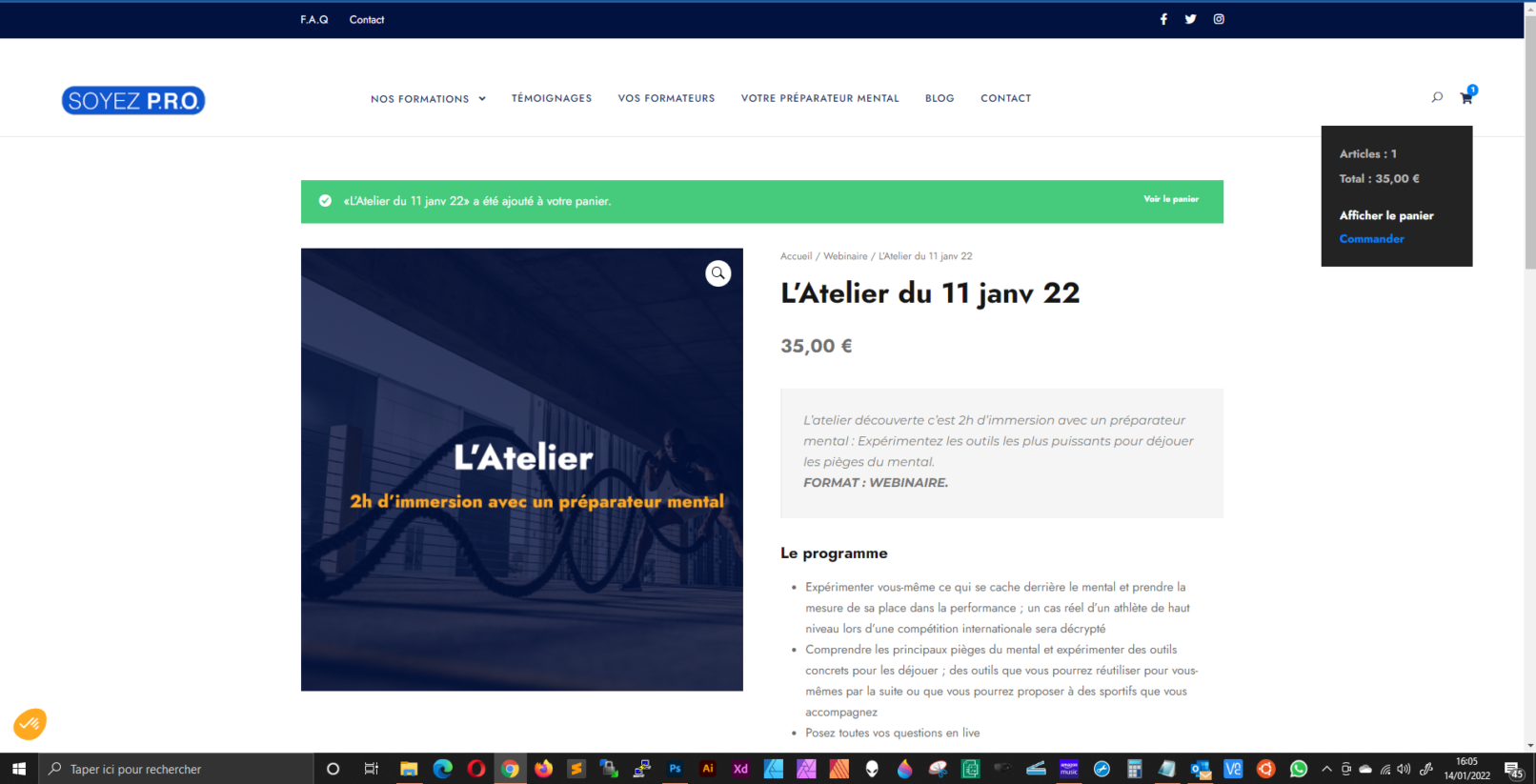 - Formation sur la gestion du site (commandes, paiements etc...)
