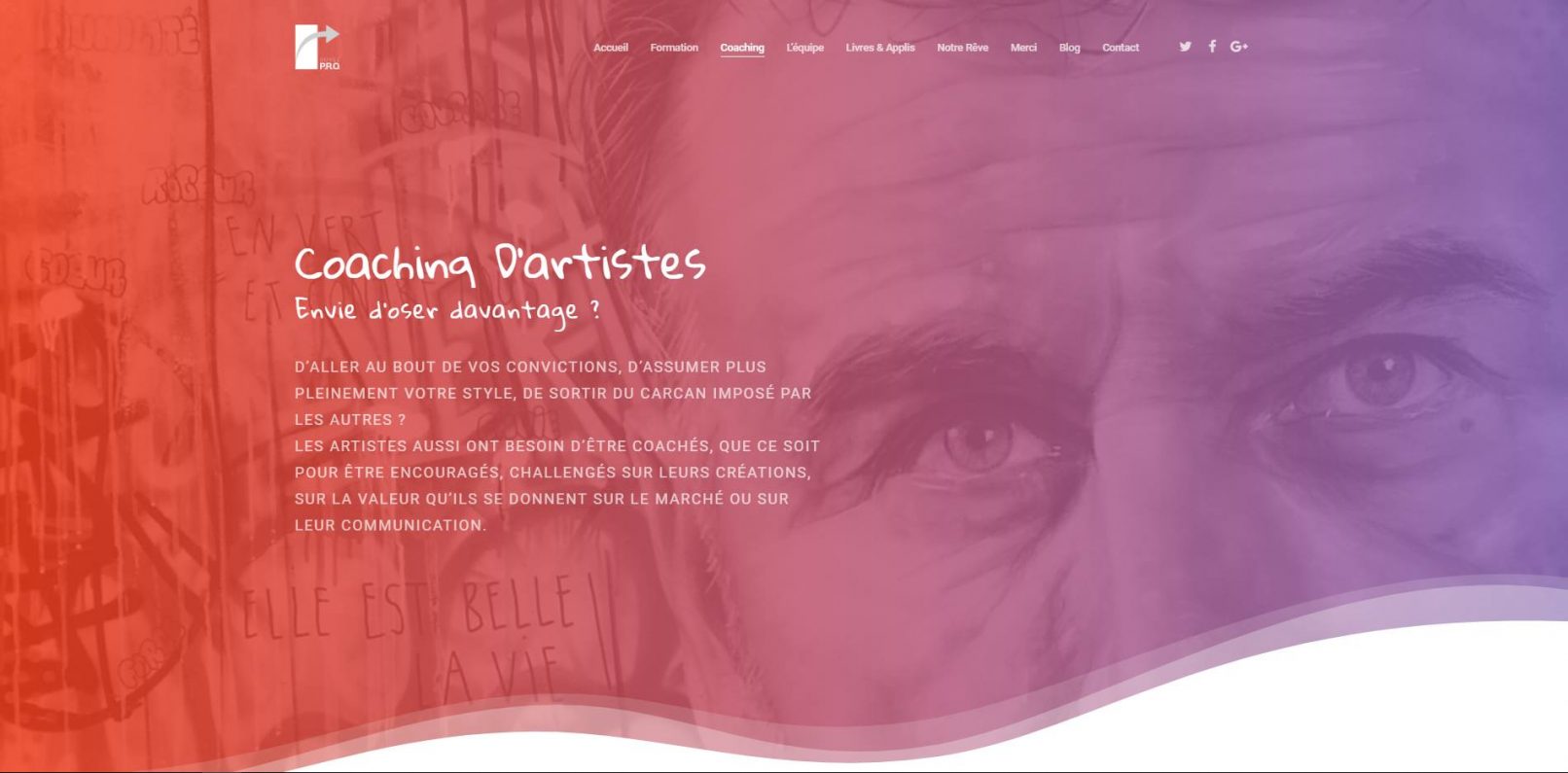 La disposition des couleurs fût choisie en fonction de la dernière mode des couleurs, avec des couleurs acidulées, montrant le dynamisme de cette entreprise de coaching parisienne, le noir et blanc quant à lui symbolise le côté humain de l’approche de ce professionnel ! A la fois moderne, futuriste et sobre il saura ravir la pupille des visiteurs. Contactez nous au plus vite pour en savoir plus sur notre travail de recherche pour le design de ce site internet et pour demander un devis pour la création ou la refonte de votre site internet par le biais de notre agence web de Lille.